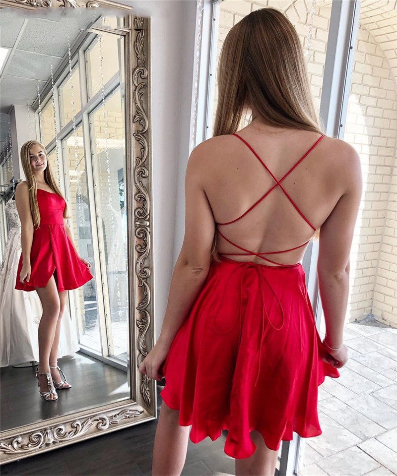 2022 Homecoming Dresses,Red Hoco Homecoming Dress,Corss Back Dance Dresses,SF0023
