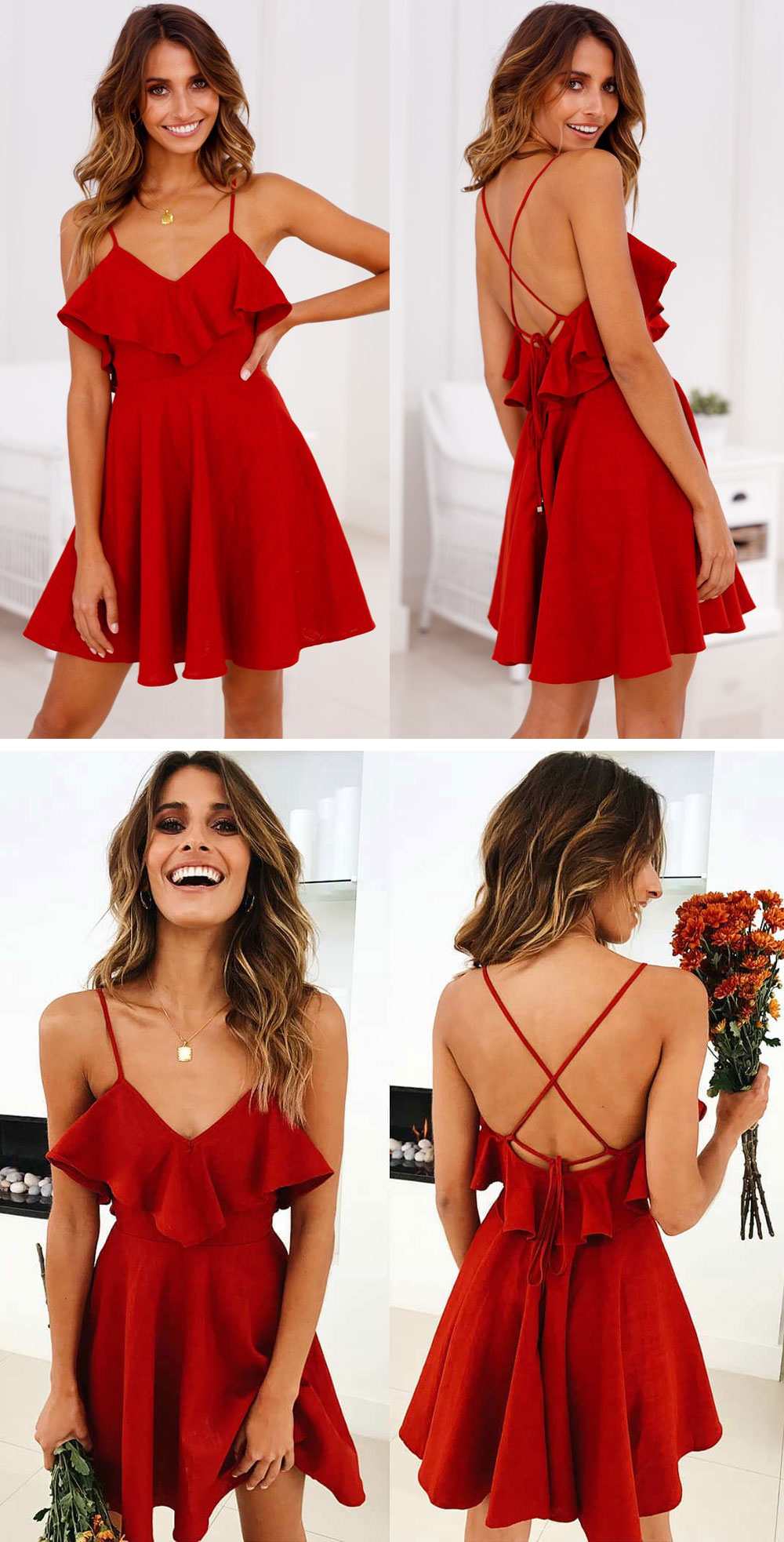 Red Chiffon Homecoming Dresses,Spaghetti Straps Evening Dresses with Ruffles,SF0028