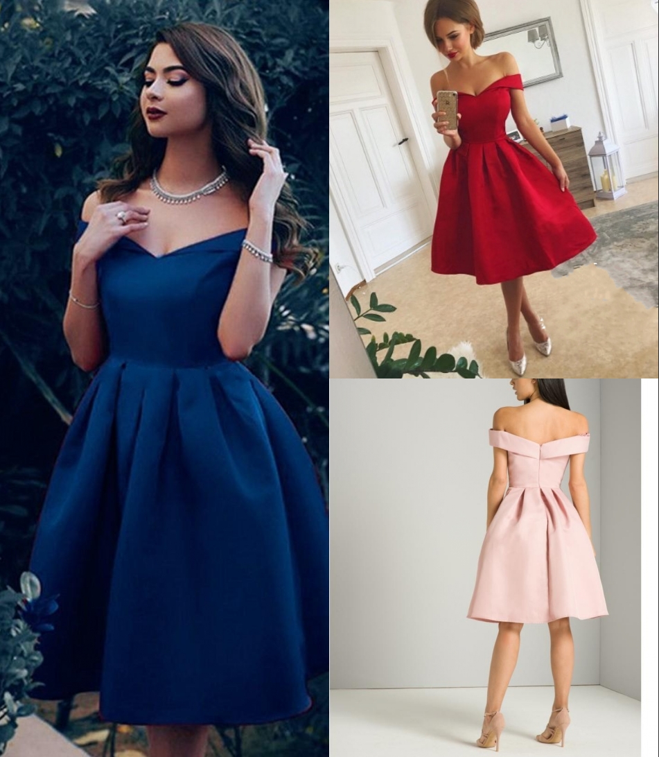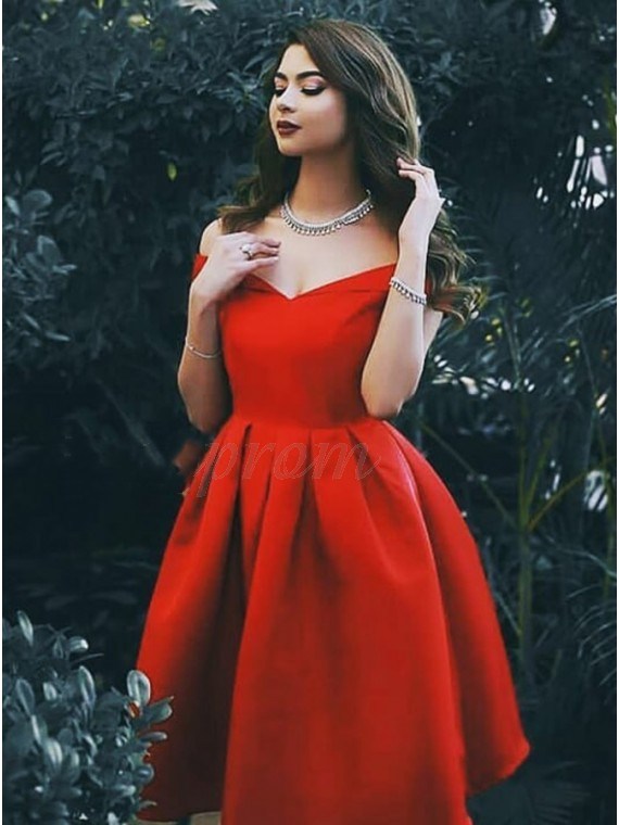 A-Line Off-the-Shoulder Knee-Length Red Homecoming Dress with Pleats,SF0056