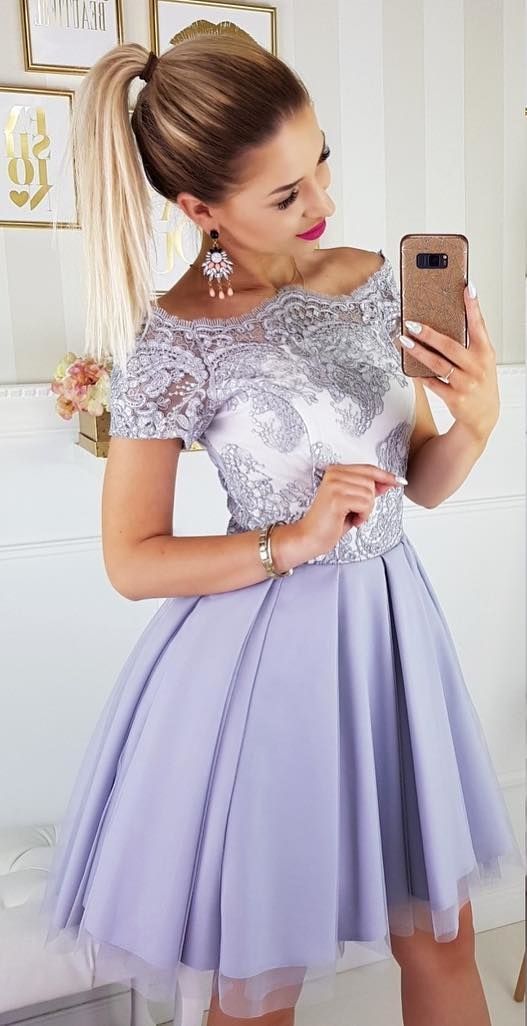 A-Line Off-the-Shoulder Above-Knee Pink Homecoming Party Dress with Appliques,SF0090