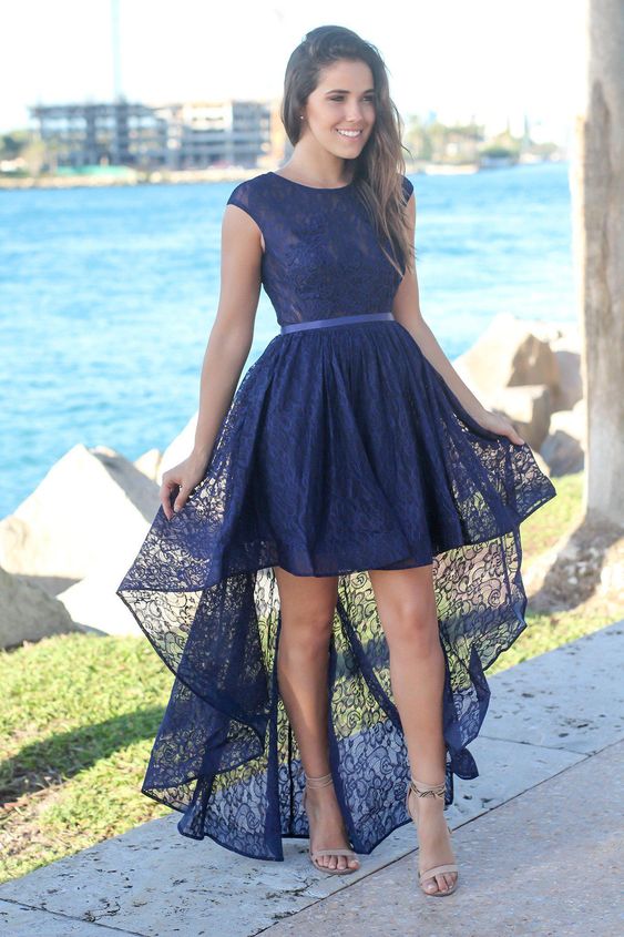 Light Pink Lace High Low Homecoming Dresses,O neck Sleeveless Graduation Gown,SF0117