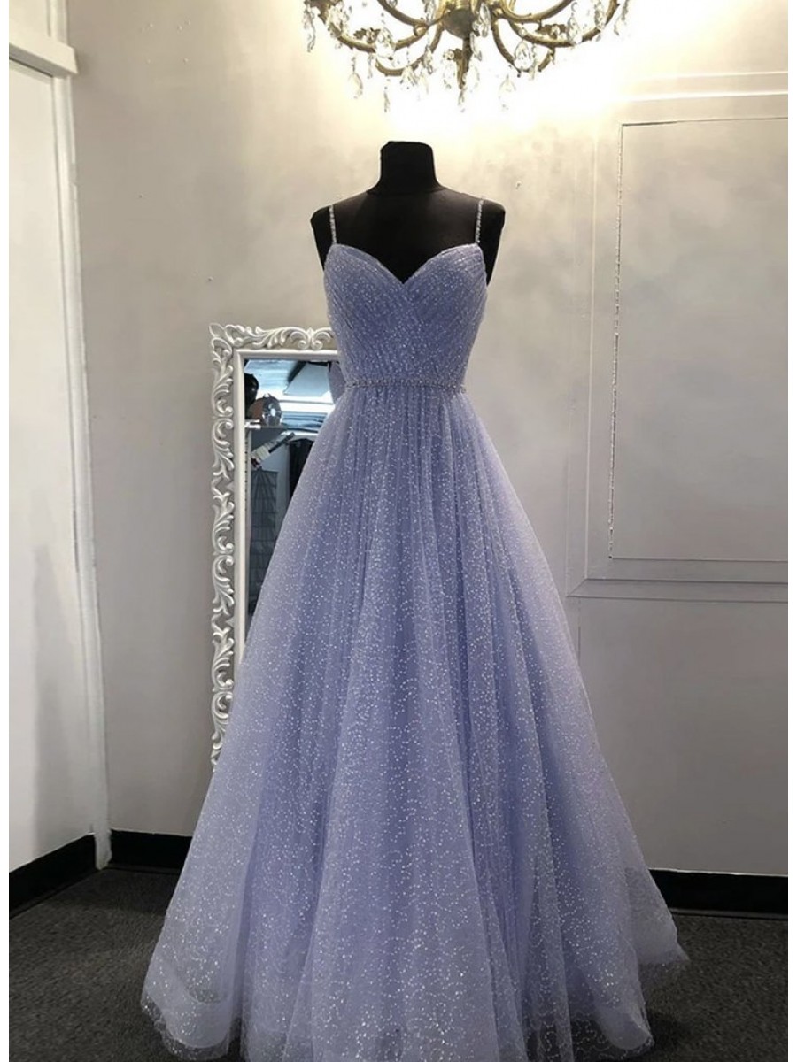 Lavender Straps Sleeveless Sparkly Floor Length Prom Dress,SF0179