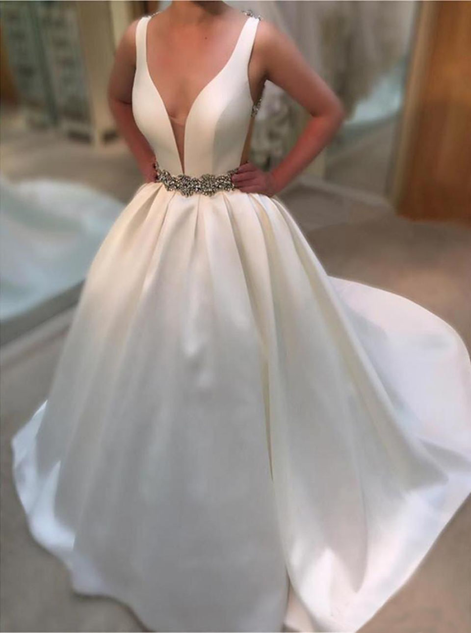 Elegant White Ball Gown,Beaded Wedding Dresses,V-neck Bridal Dress,SF0184