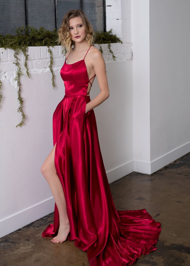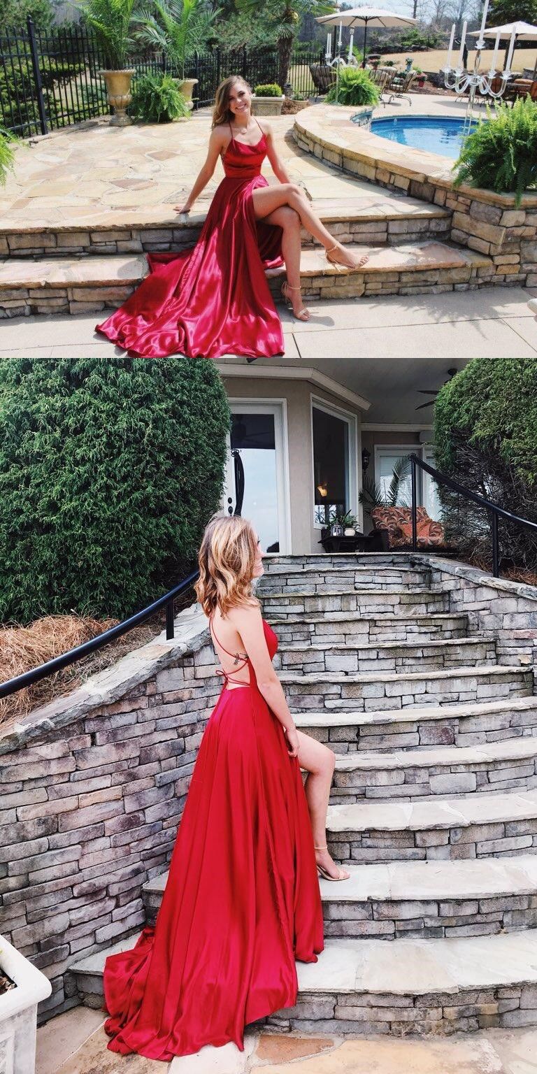 Gorgeous Straps Red Long Prom Dress with Slit,SF0195