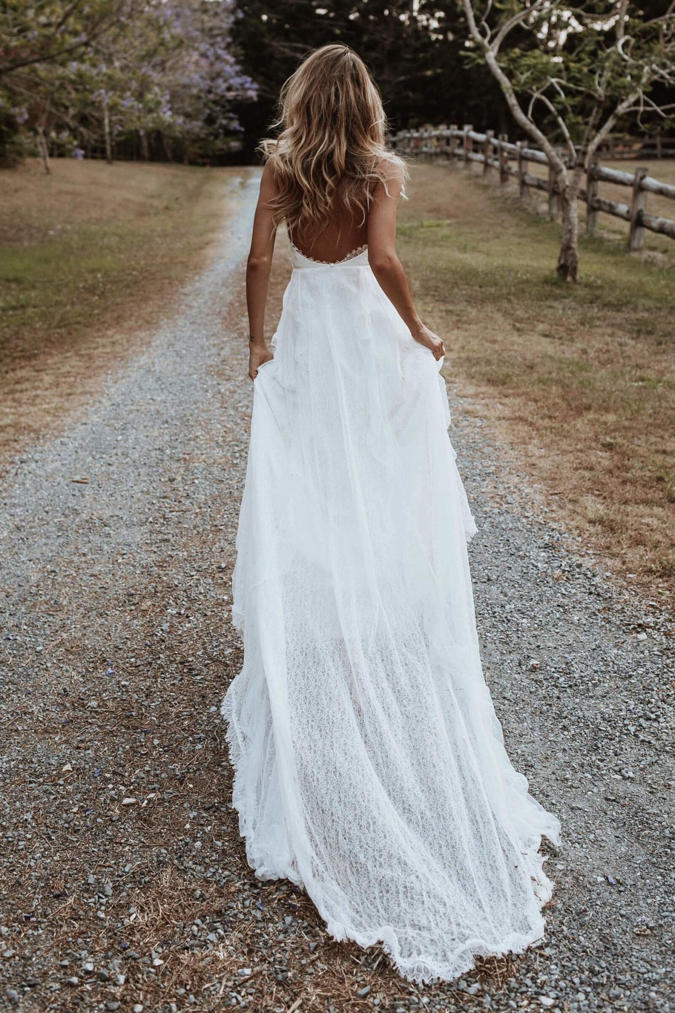 White Lace Wedding Gown,Sexy V-neck Wedding Dresses Bridal Dresses,SF0205