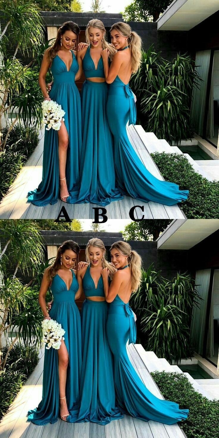Sexy Mismatched Side Slit Long Blue Bridesmaid Dresses,SF0209