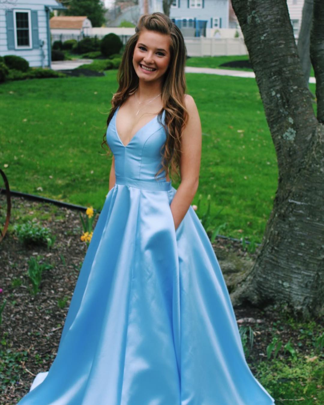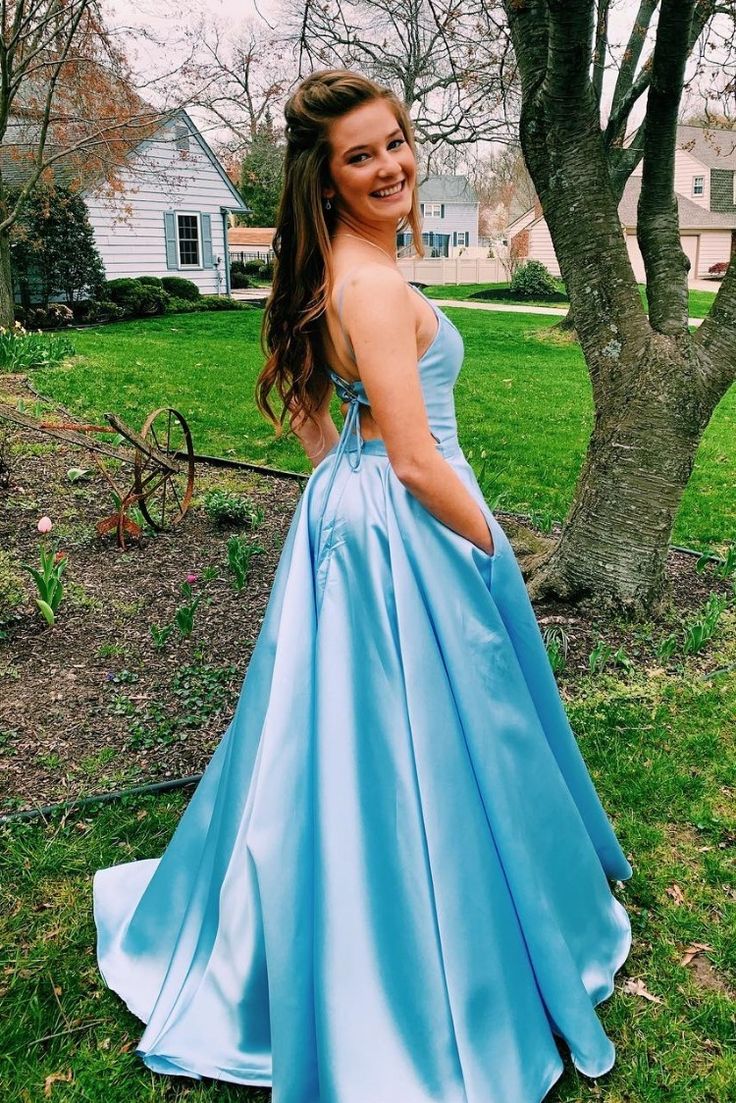 Prom Dresses,Long Prom Dress,2020 Cheap Prom Dresses,Sky Blue Evening Party Dress with Pockets,SF0247