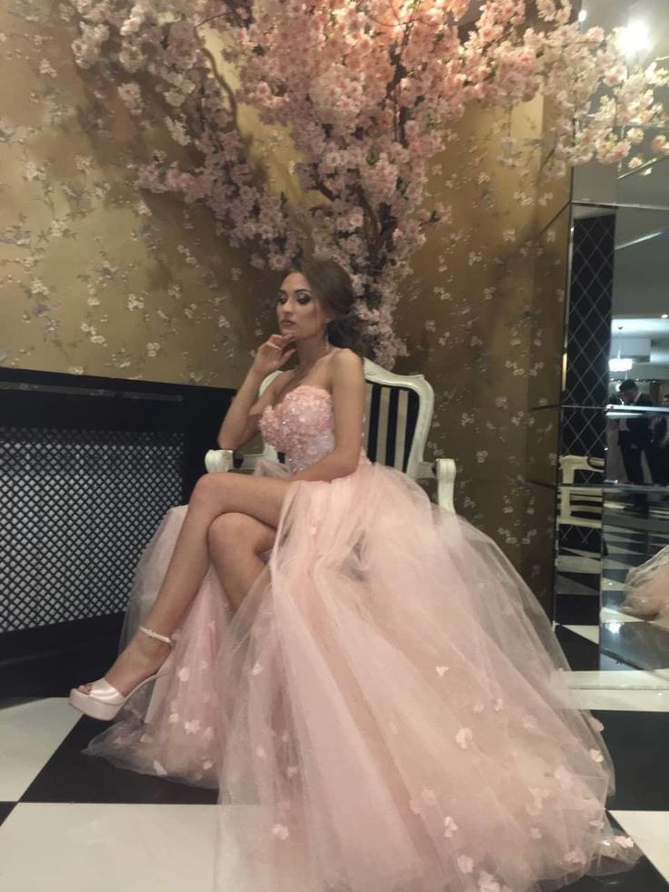 Pink Floral Long Prom Dresses,Sweetheart Pink Evening Formal Dress,Tulle Wedding Dresses,SF0268