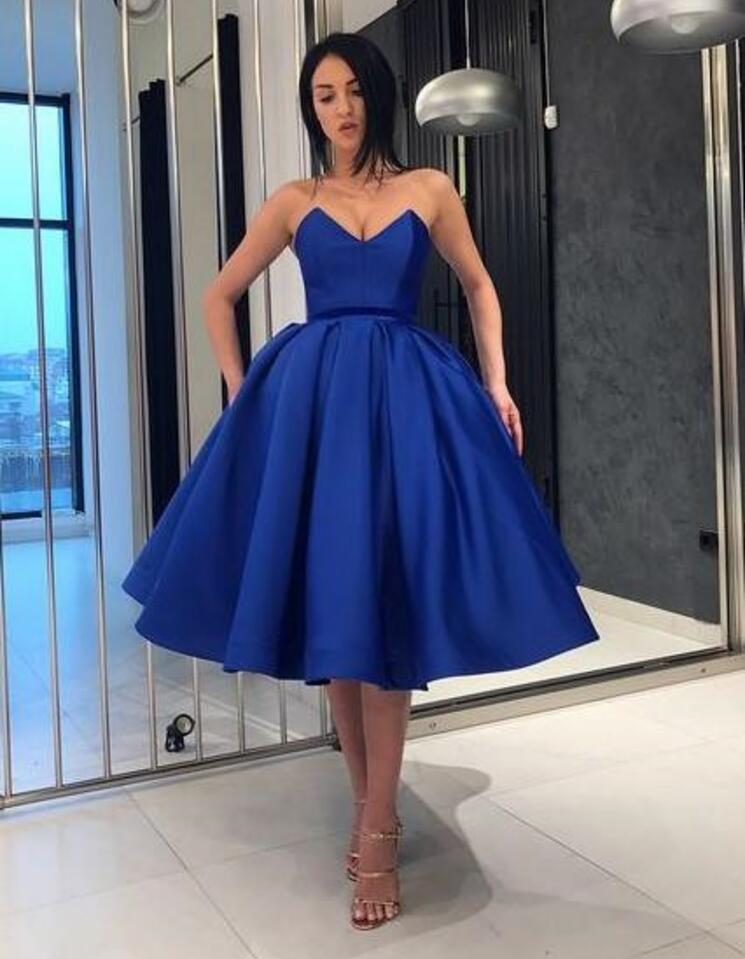 Royal Blue Satin Formal Party Dress Short Prom Evening Gown Homecoming Dress,SF0269