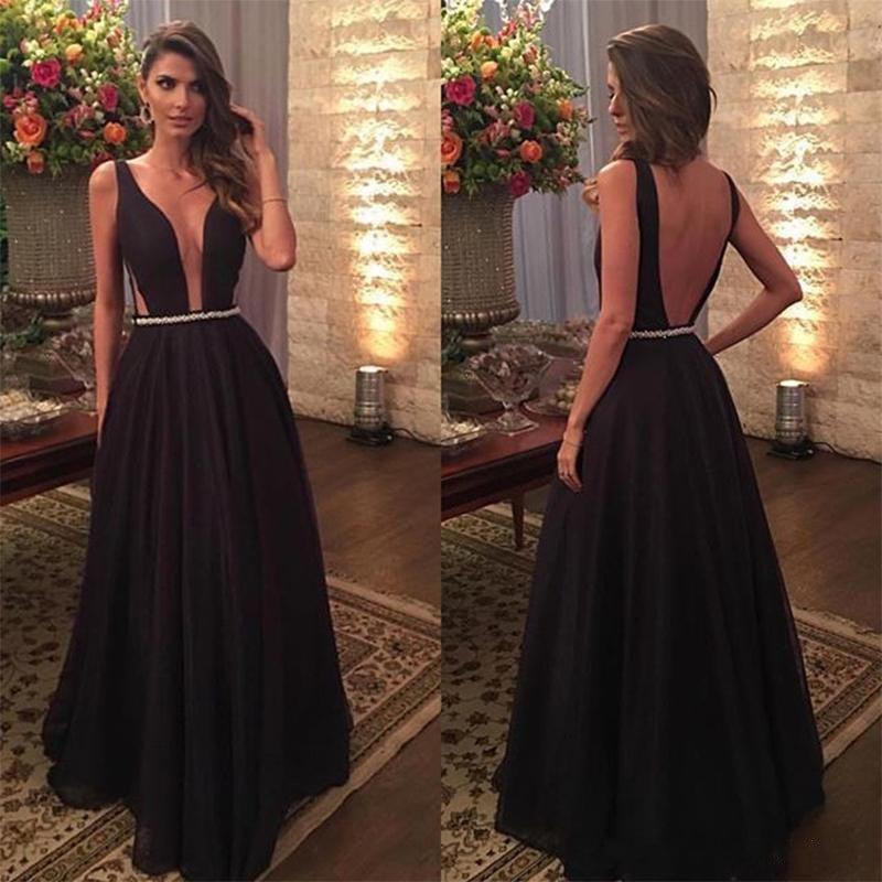 Sexy Black Prom Dresses,Deep V Neck Long Black Satin Evening Gown,SF0302