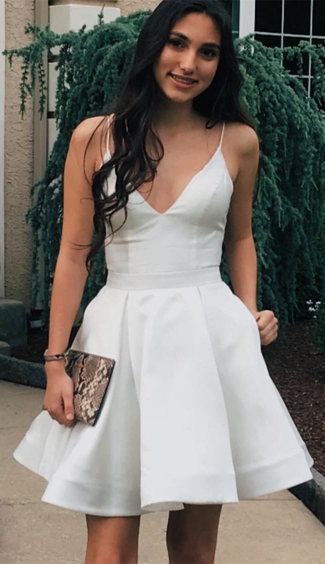 Spaghetti Straps V-neck Homecoming Dresses,Sleeveless Graduation Dress,SF0329