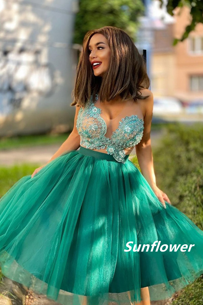 Elegant green v neck organza applique homecoming dresses,a-line sleeveless graduation dresses,SF0419