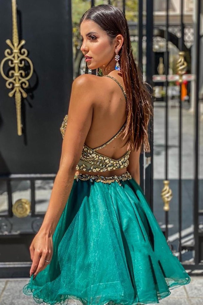 Jewel Green Organza Homecoming Dresses,Luxury Beading A-Line Dance Gown,SF0423