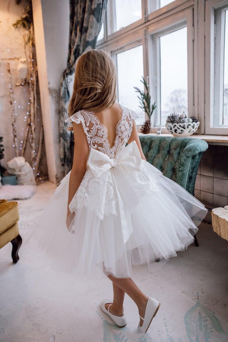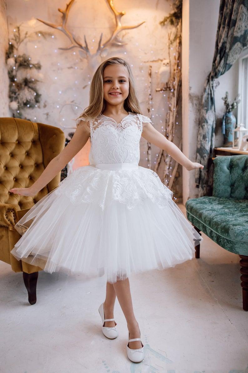 Cute White Lace Tulle Flower Girl Dresses,Mini Little Girl Dress,SF0451