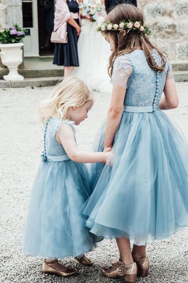 Cute Lace Short Tea Length A Line Sleeves Flower Girl Dresses,SF0458