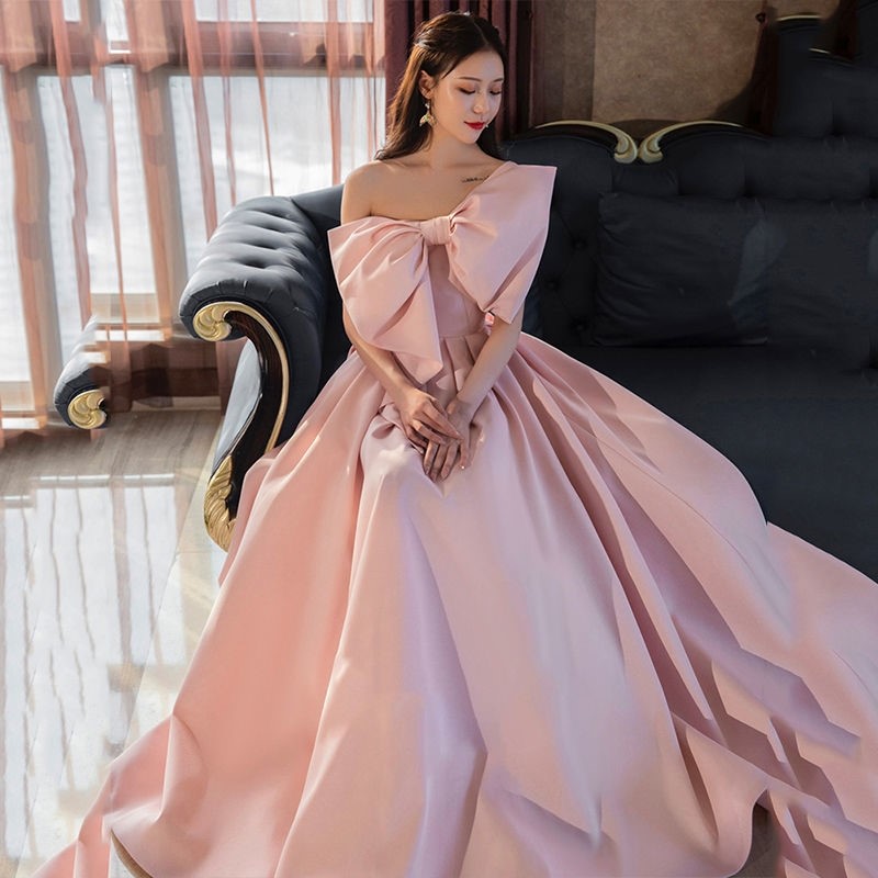 Sweet pink evening dress,bowknot sleeveless long prom dress,SF0521
