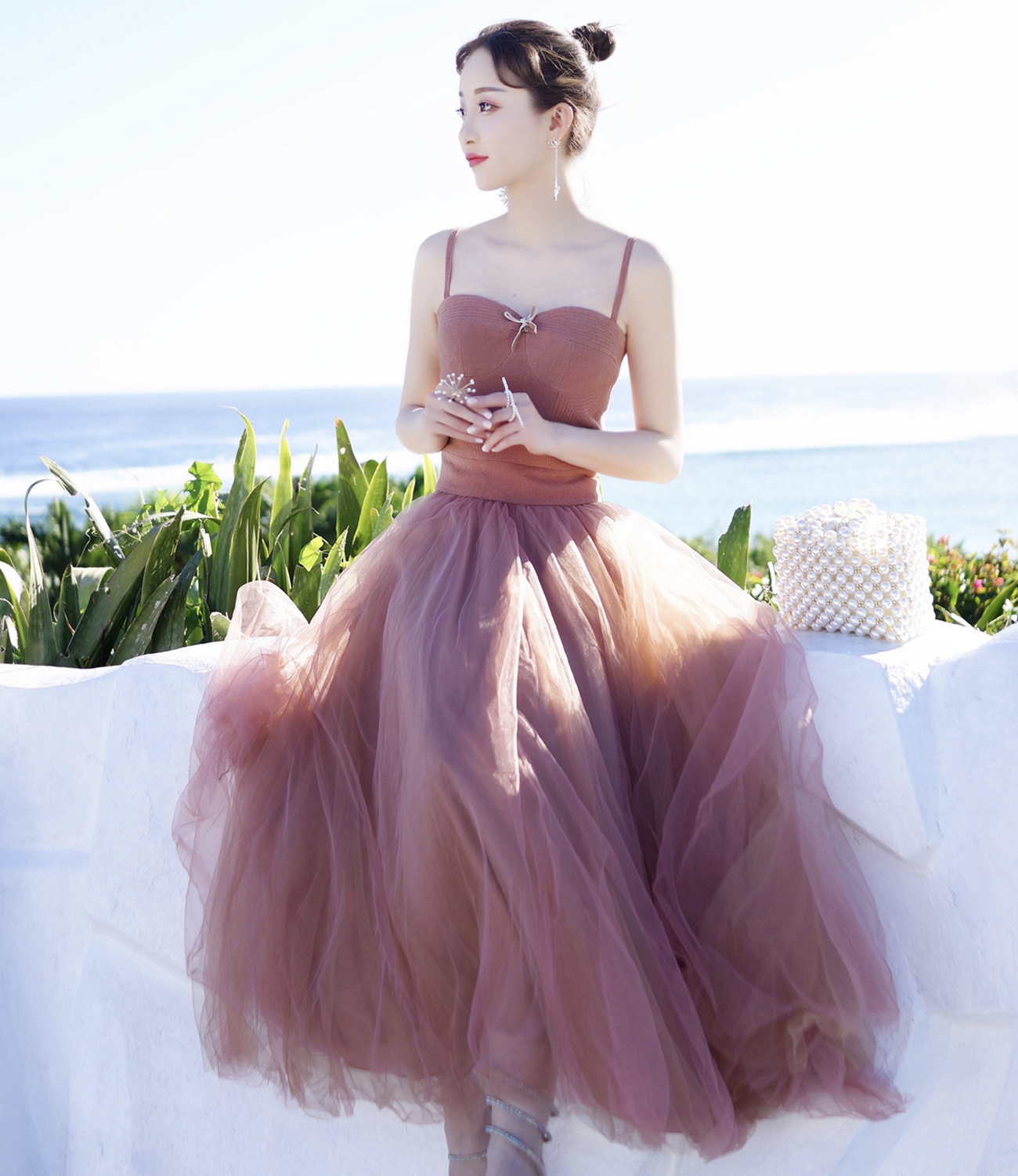 Sweet pink evening dress,spaghetti straps tulle party dresses,sweetheart homecoming dress,SF0522