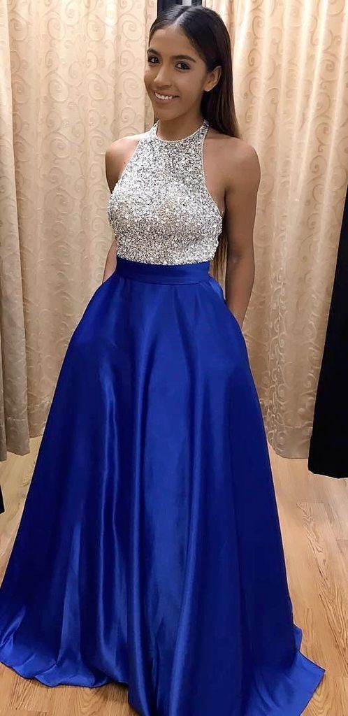 Royal blue a-line beaded a-line prom evening dresses,SF0529