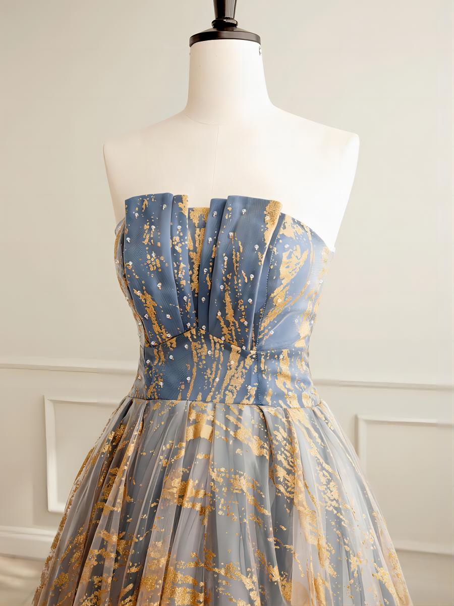 A-Line Gold/Blue Lace Short Prom Dress, Cute Homecoming Dress with Beading,SF0554